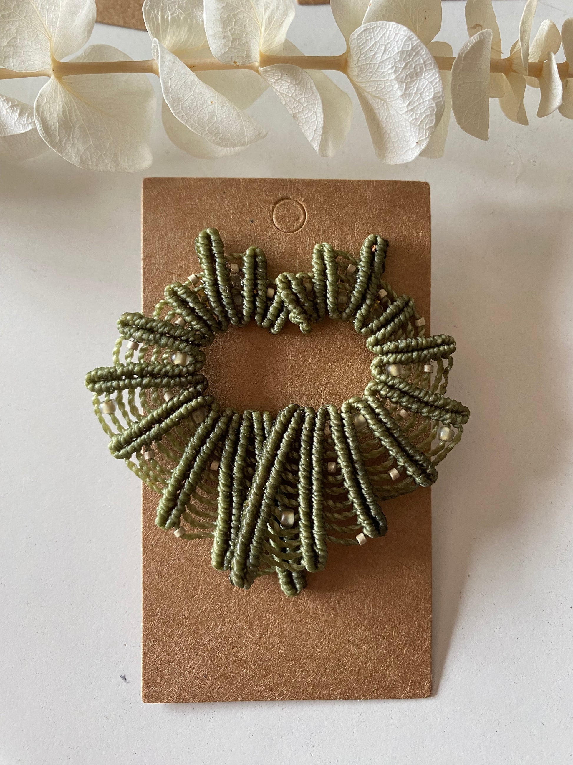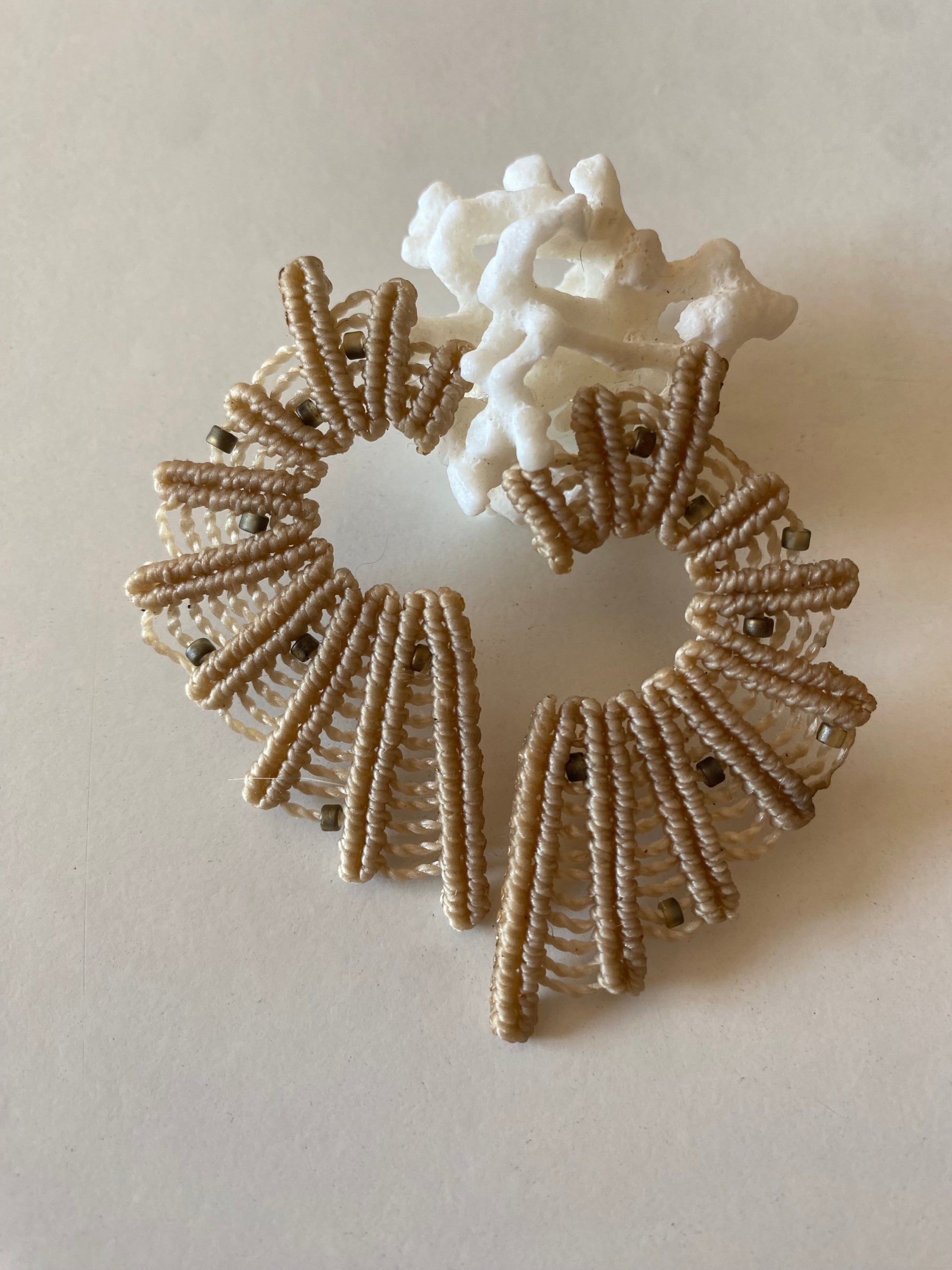 El modelo Coral es un diseño único, hecho en micromacramé. Siempre encontrarás pequeñas variaciones que muestran que no hay dos iguales.